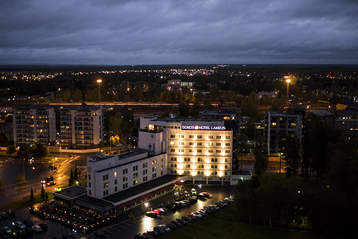 Uskon yö tapahtumassa 19.9.2015 Lakeuden Ristillä oli monenlaisia tapahtumia. Käväisin vähän auringonlaskun jälkeen tornissa. Monet kaupunkikuvaajat pitävät 30-40 minuuttia auringonlaskun jälkeen parhaana valokuvausaikana. Tuolloin taivas ei ole vielä musta, vaan sinisävyinen. Tässä muutama sininen kuva.