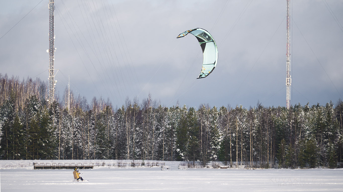 Leijalautailija lumella / Kiteboarder on snow (Lake Kyrkösjärvi)