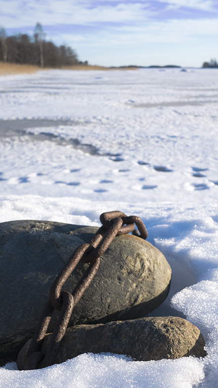 Ruosteinen ketju lumessa/The rusty chain in snow (Kristiinankaupunki 17.3.2016)