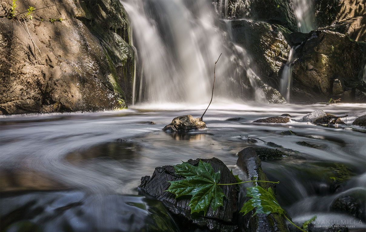 Vaahteranlehti Strömberginkosken putouksella / The Maple leaf in front of the waterfall Strömberginkoski