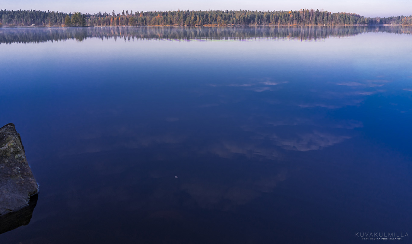 Kuu ja peilauksia syksyisen järven pinnasta