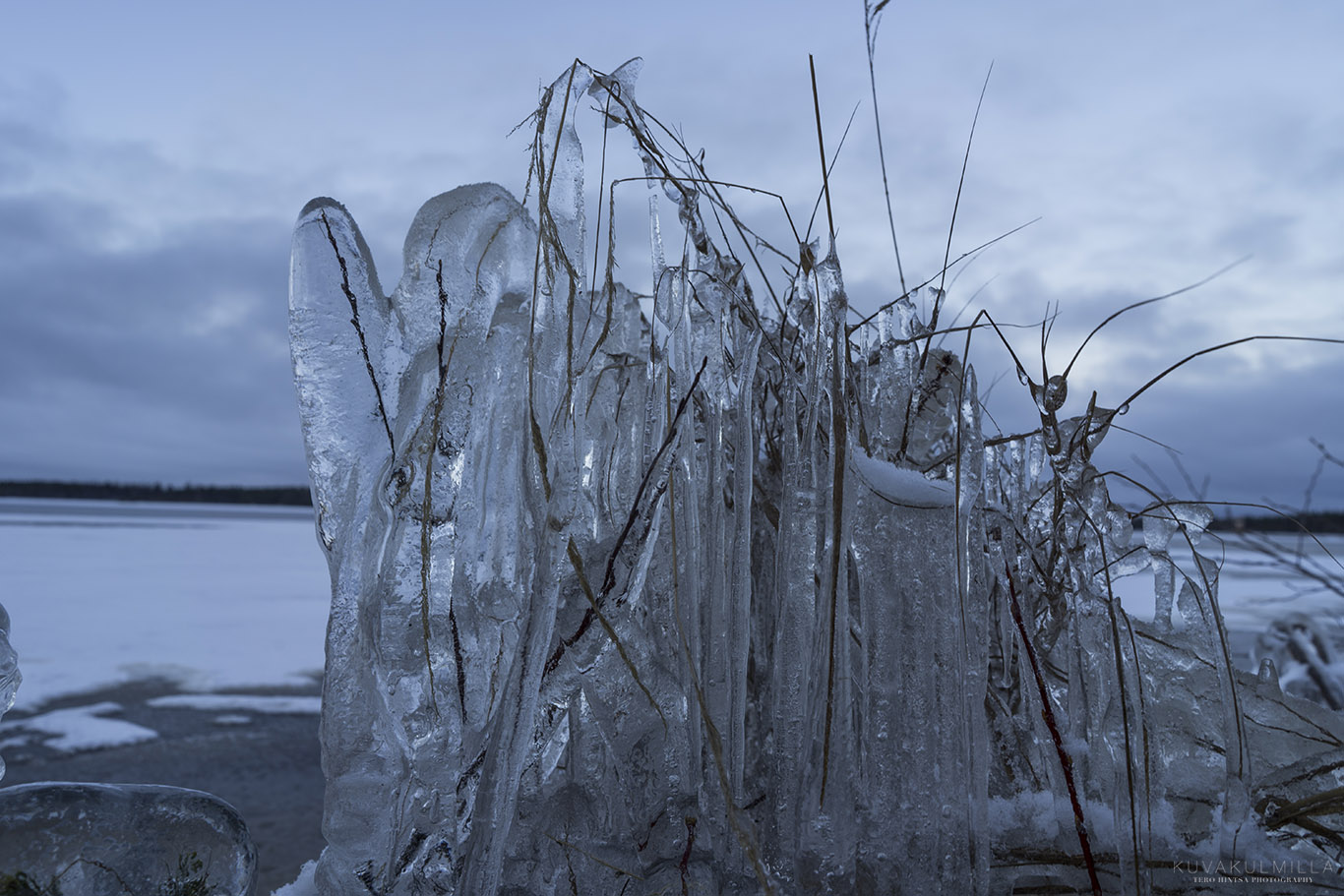 Myrsky jäädytti rantakasvit Kyrkösjärvellä / Winter Storm froze the plants by the lake Kyrkösjärvi