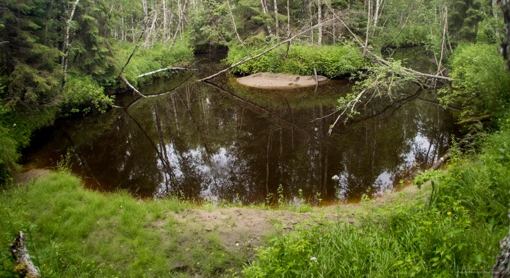 Kävelimme Saaripurolta ”oikoreittiä” autolle. Ajauduimme jossain vaiheessa puron väärälle puolelle, mistä meidät pelasti puron päälle kaatunut tai siirretty kelo.