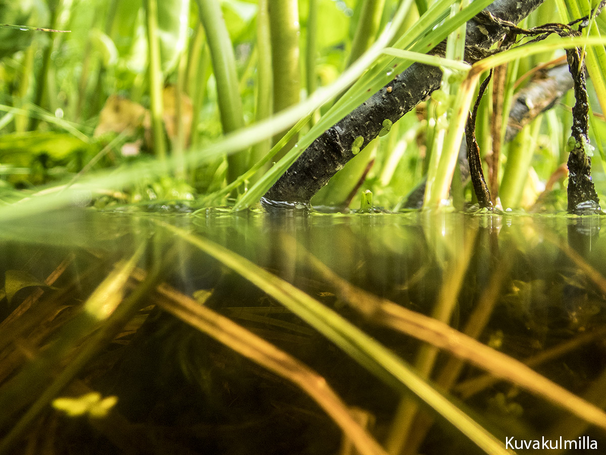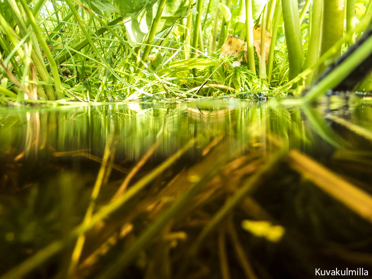 Vesiputouskuvaaja tarvitsee ainakin yhden laajakulmaisen objektiivin. Monet putoukset Suomessa sijaitsevat paikoissa, joissa toimiva kuvausmatka on kohtuullisen lyhyt. Ilman laajakulmaista objektiivia kuvaan ei saa sopimaan kaikkea mitä haluaisi. Lisäksi vesiputouksilla matkan pidentyessä lisääntyvät yleensä oksat ja muut kuvattavan kohteen eteen tulevat esteet joen rannoilla. Hankin itse ahtaita paikkoja varten kalansilmälisäkkeen Olympyksen Tough TG-4 kameraan. Todella laajan kuvakulman lisäksi se on vettä kestävä. Tämä mahdollistaa kuvaamisen niin, että osa kuva-alasta on veden alla.