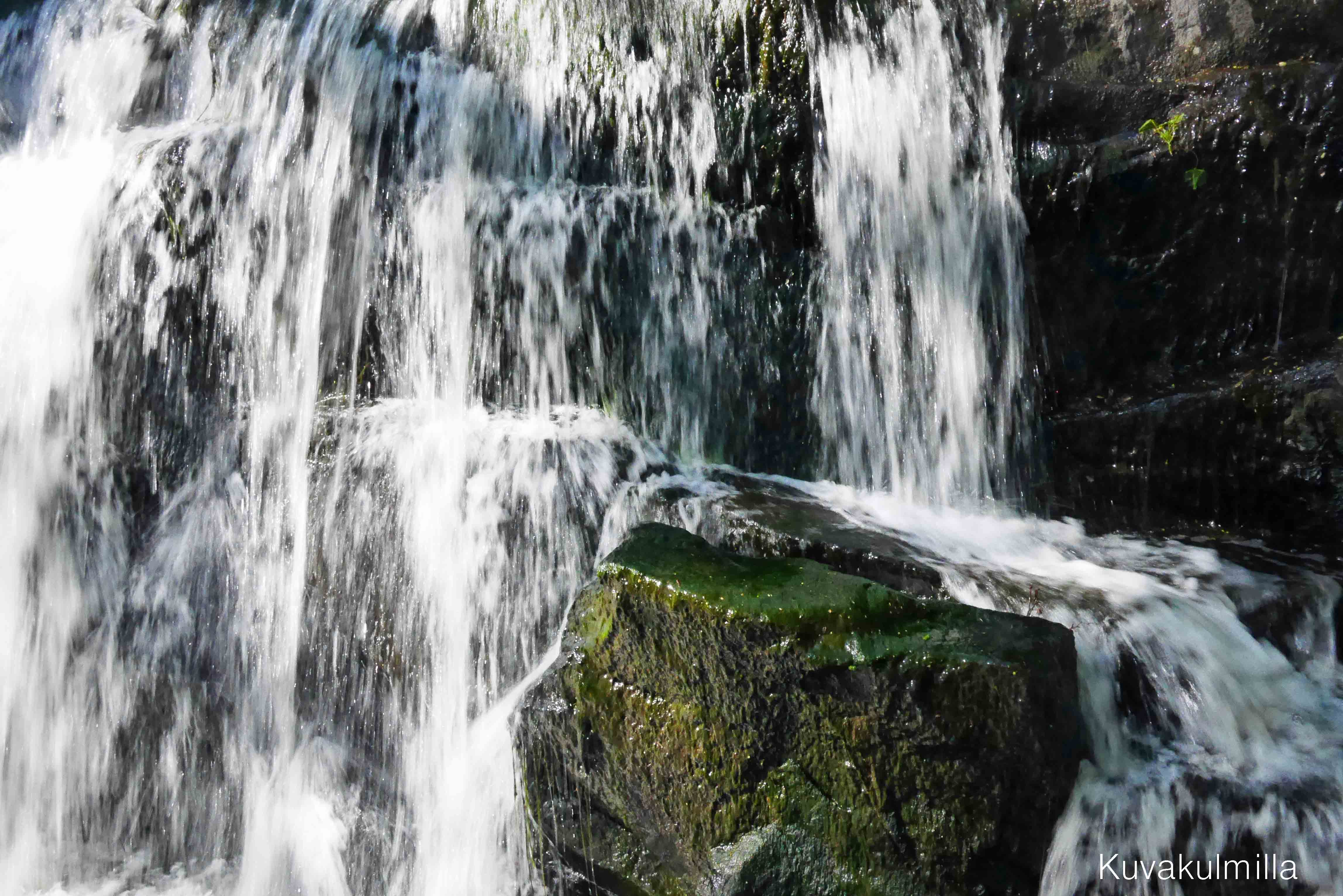 Pääsin perjantaina 15.5. käymään ensimmäistä kertaa Juveninkoskella Jämsässä. Juveninkoskelta löytyy yli 6 metriä korkea vesiputous, jolle on annettu 3/5 tähteä Suomen vesiputoukset -sivuilla. Saapuessani Juveninkoskella ilma oli aurinkoinen, mutta muuttui pilviseksi. Pilvisellä taivaalla kerkisin kuvaamaan vähän aikaa, kunnes alkoi vesisade. Putouksen alapuolella on tosin niin paljon vesipisaroita ilmassa ja korkea kosteusprosentti, että ei ole oikeastaan väliä sataako vai ei. En tiedä miten valokuvaus järkkärillä onnistuisi tuossa olosuhteessa? Sonyn Xperia Z3:lla kuvailin putouksen alapuolella.