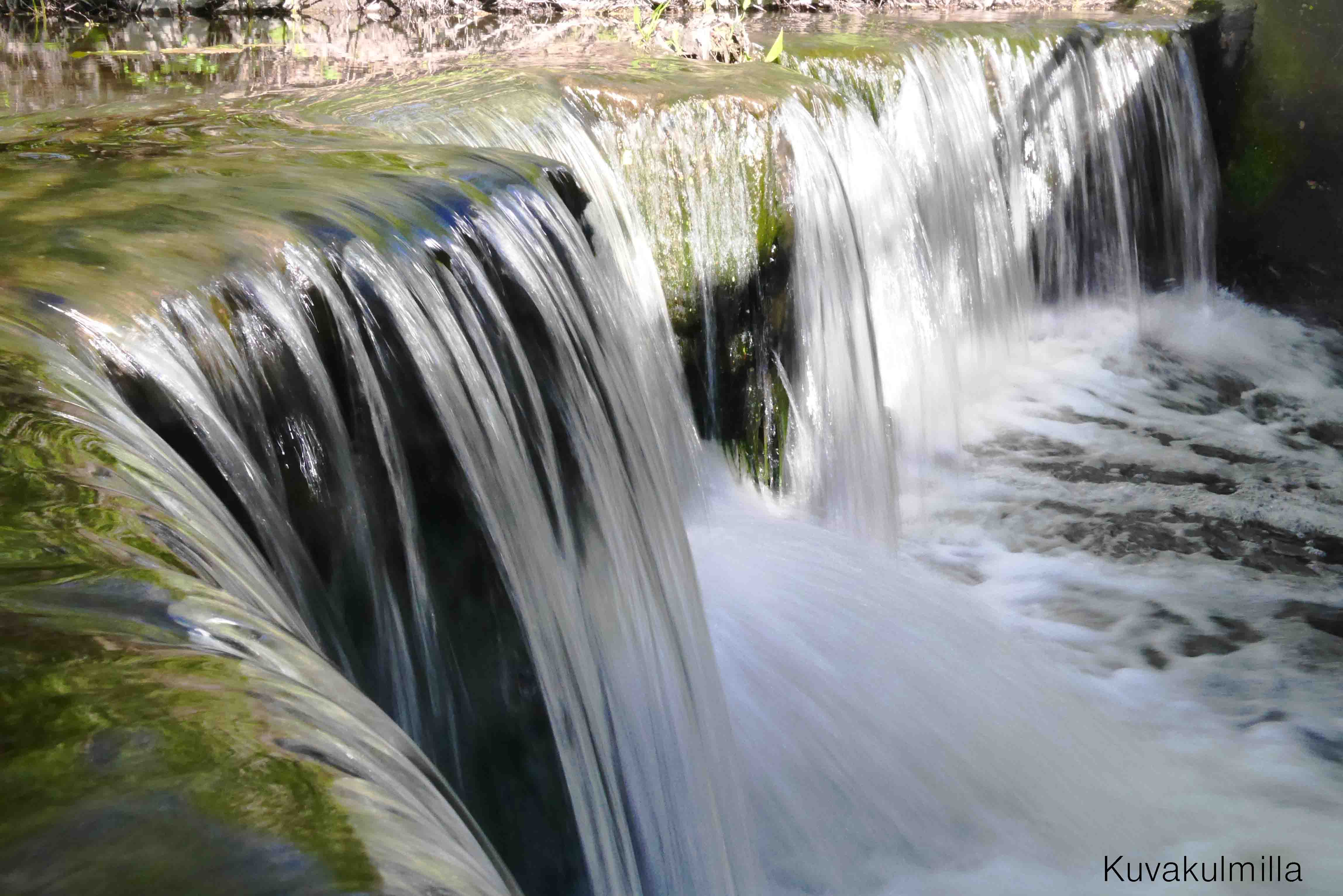 Strömberginkosken pauhu peittää alleen kaupungin muut äänet.Strömberginkosken putous suoraan edestäpäin.Putouksen ääreen pääsee vaikka lakeerikengillä.Pienempi putous Strömberginkoskella.Strömberginkosken alku.
