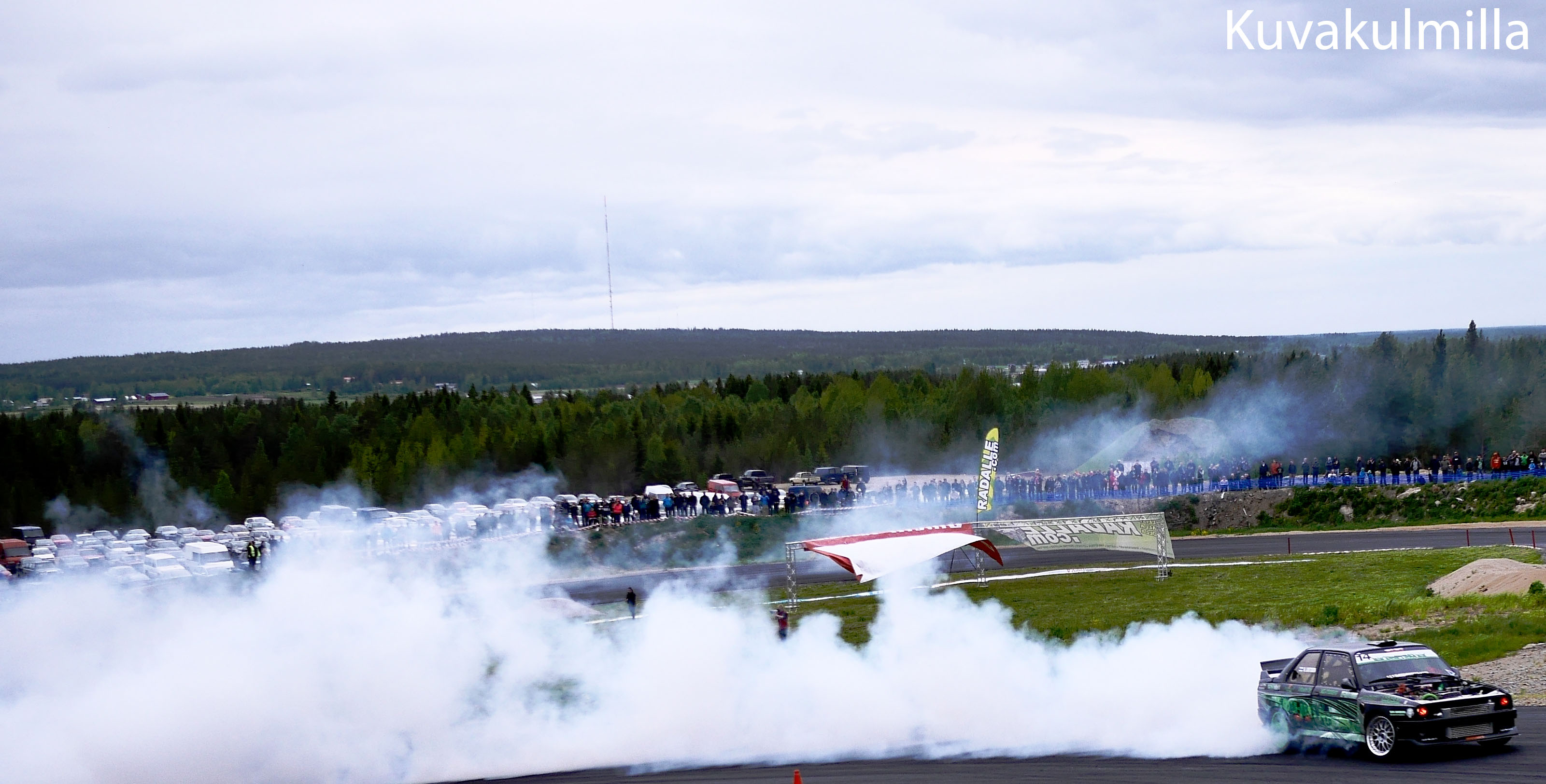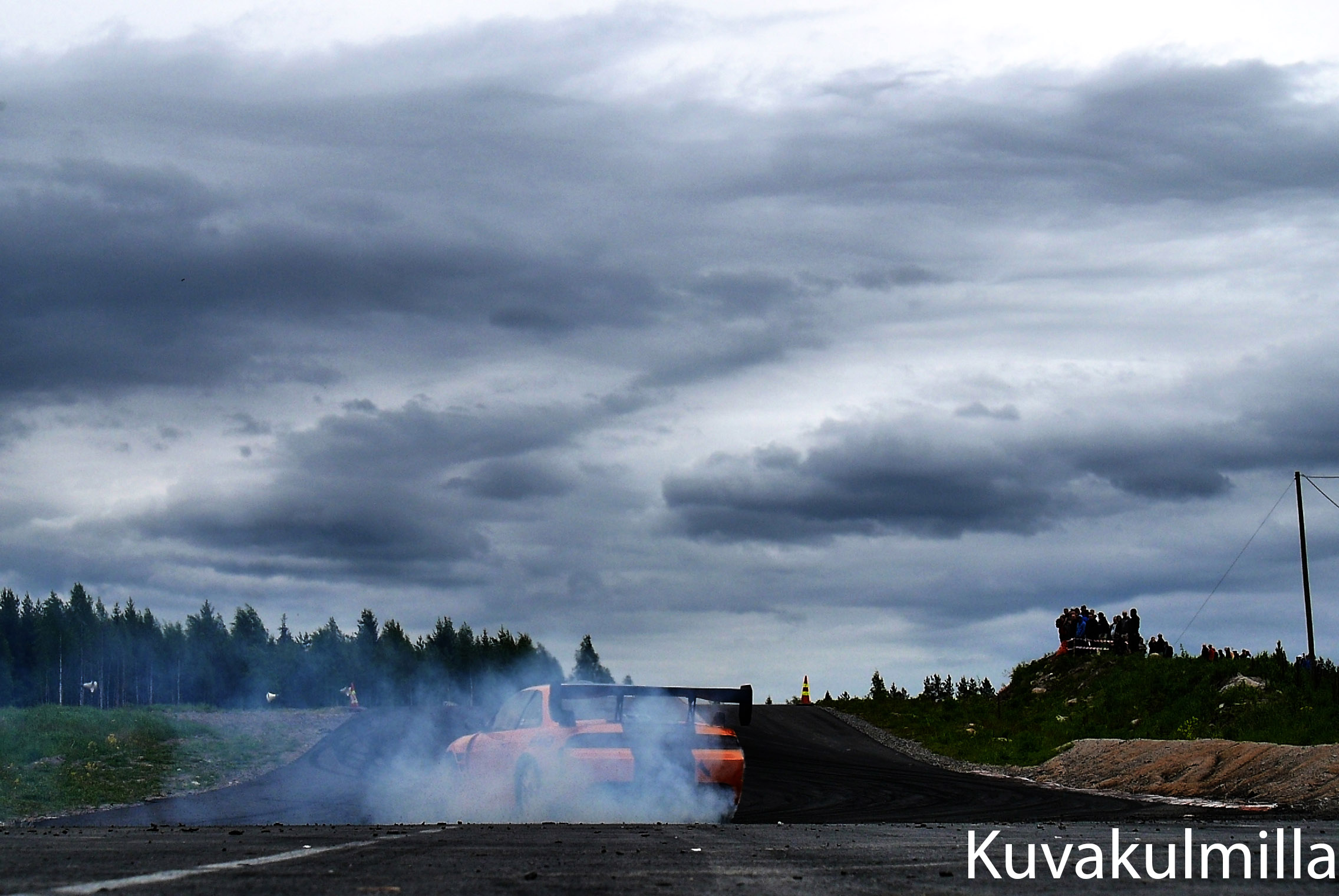 Pyörähdettiin pojan kanssa Lapualla Driftingin Suomen mestaruus osakilpailussa tänään. Tosi hyville kuvauspaikoilla pääsi helpolla Lapuan urheiluautoilijoiden radalla Hirvijärvellä. Keli oli pääosan aikaa kisasta hyvä, saderintaman lähestyessä Lapuaa pilvet olivat varsin dramaattisia. Kisajärjestäjien harmiksi lopussa alkoi sataa, tosi hyvä driftit joka tapauksessa!
