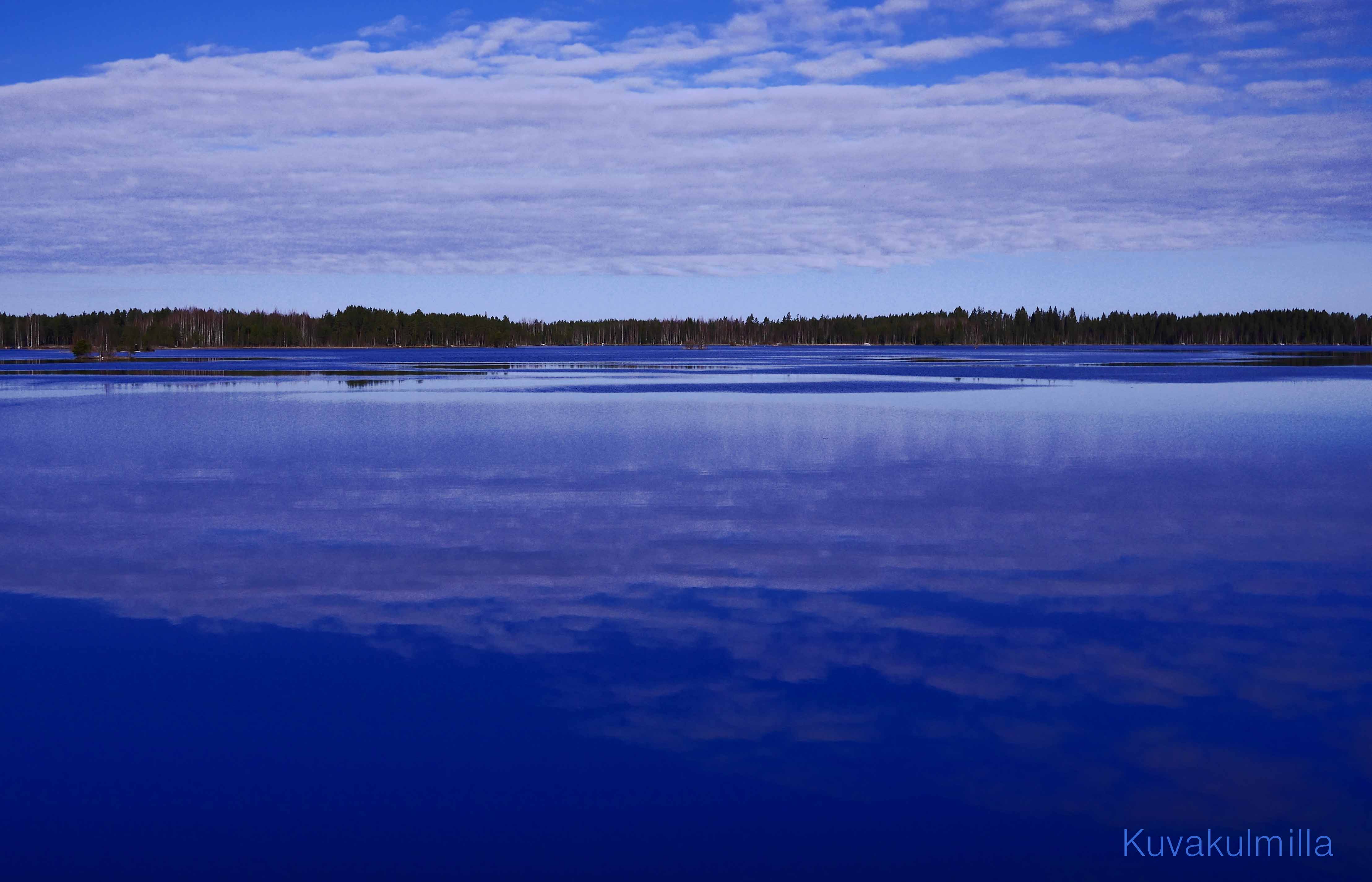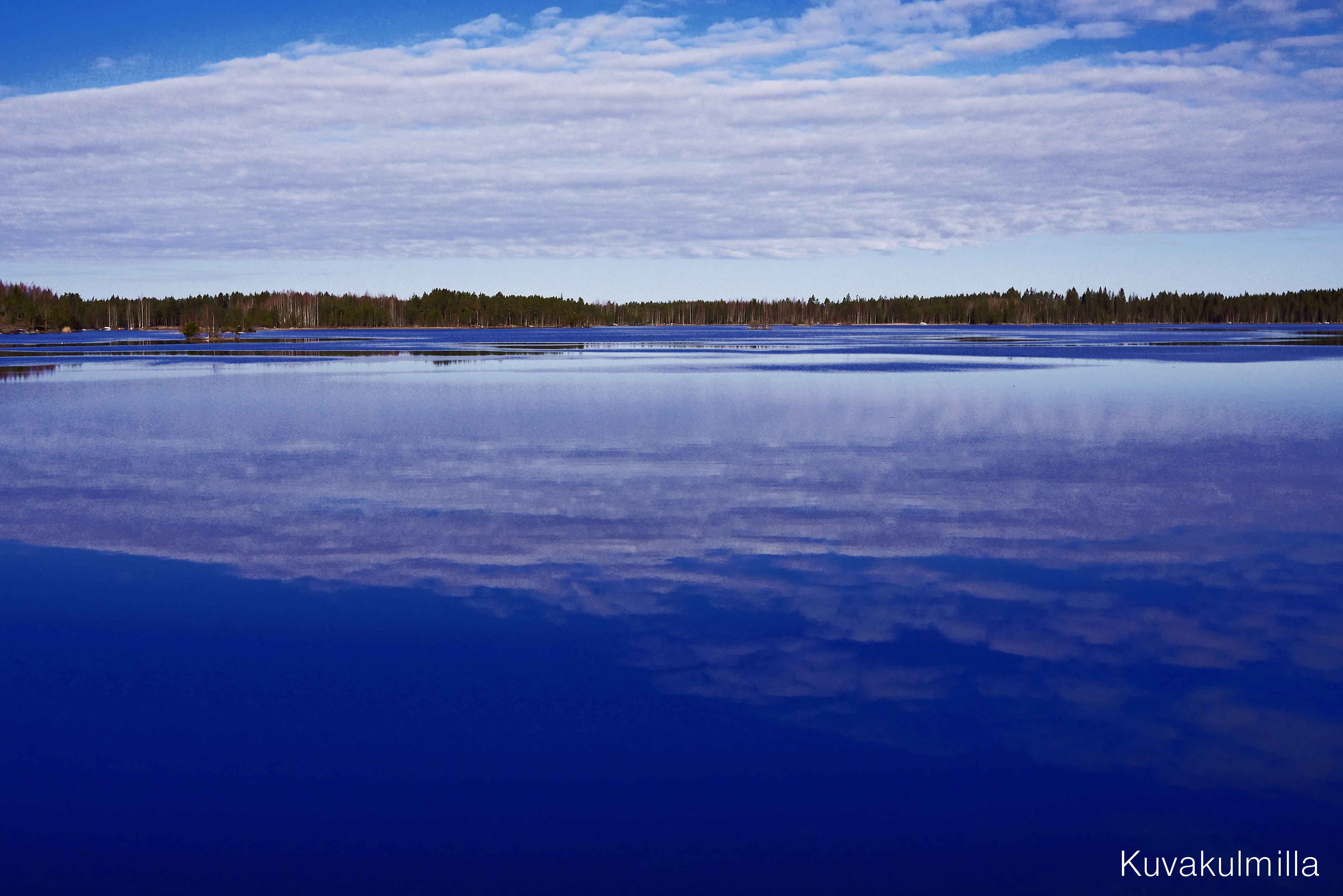 Viime päivinä ei ole ollut hyviä auringonlaskuja, koska joka ilta tuulee. Tänään aamupäivällä oli hetken aikaa lähes täysin tyyni. Aurinko paistoi selän takaa ja Kyrkösjärvi oli todella sininen.