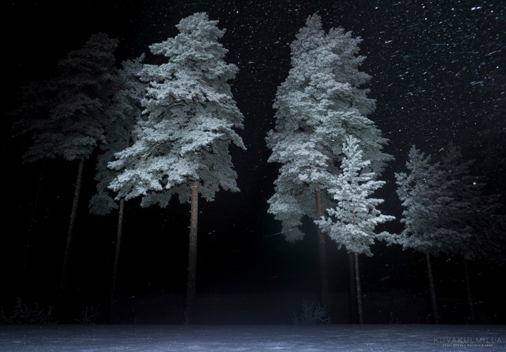 Livecompilla kamera ottaa ensin yhden ruudun. Tämän jälkeen kuvaan piirtyy lisäksi valot, jotka ovat kirkkaampia kuin ensimmäisessä ruudussa. Pimeässä sijaitsevat kohteet voi valaisemalla tuoda kuvaan. Tällä tekniikalla lumisten puiden eleetön hiljaisuus tallentui kauniisti. Vitsi kun oli hienoja puita!