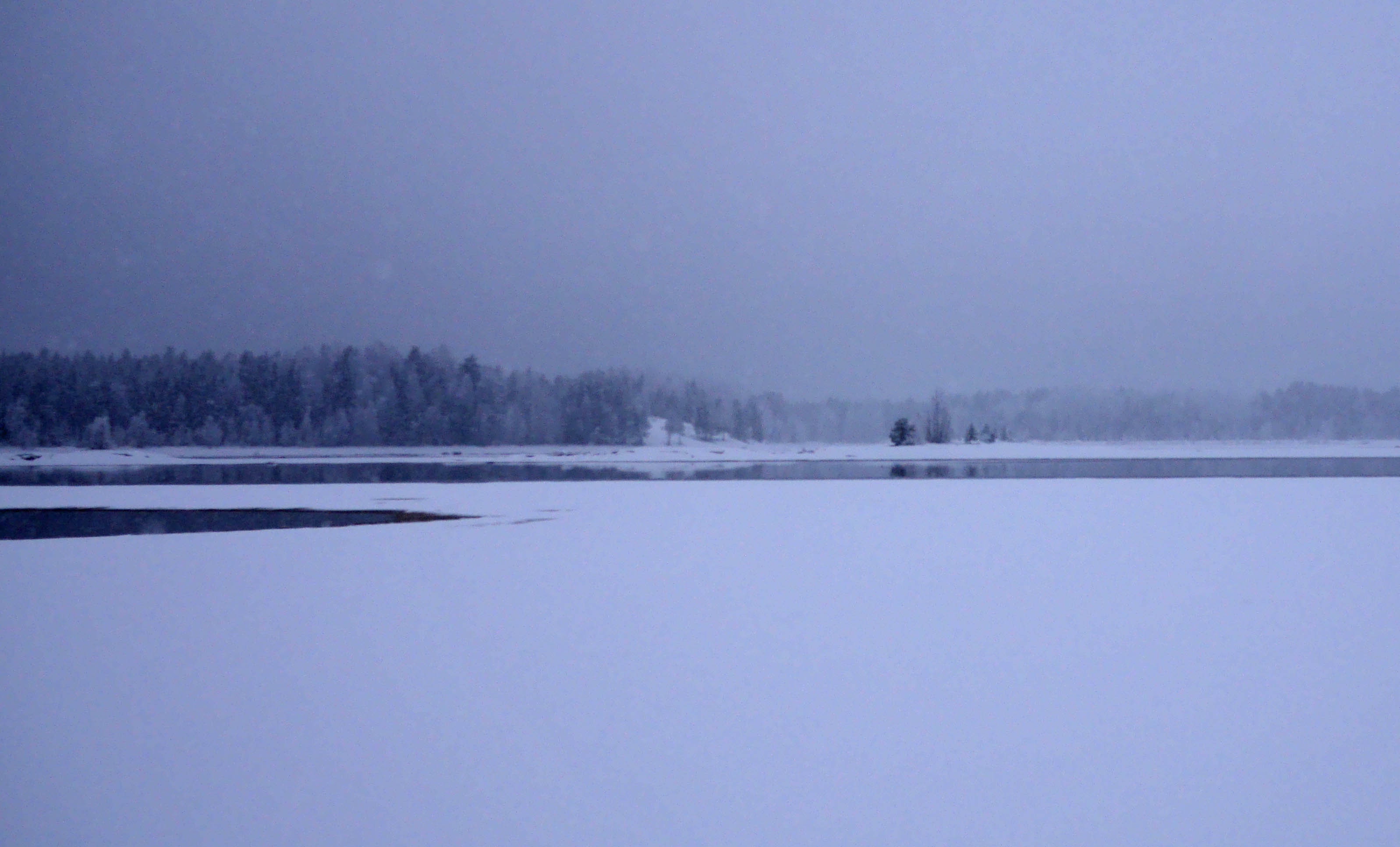 Todella harmaa päivä. Mittari nollassa, sakea lumisade ja joka paikassa harmaata lunta lukuunottamatta. Lumestakaan ei heijastu kovin paljon valoa, koska sitä ei vaan ole.