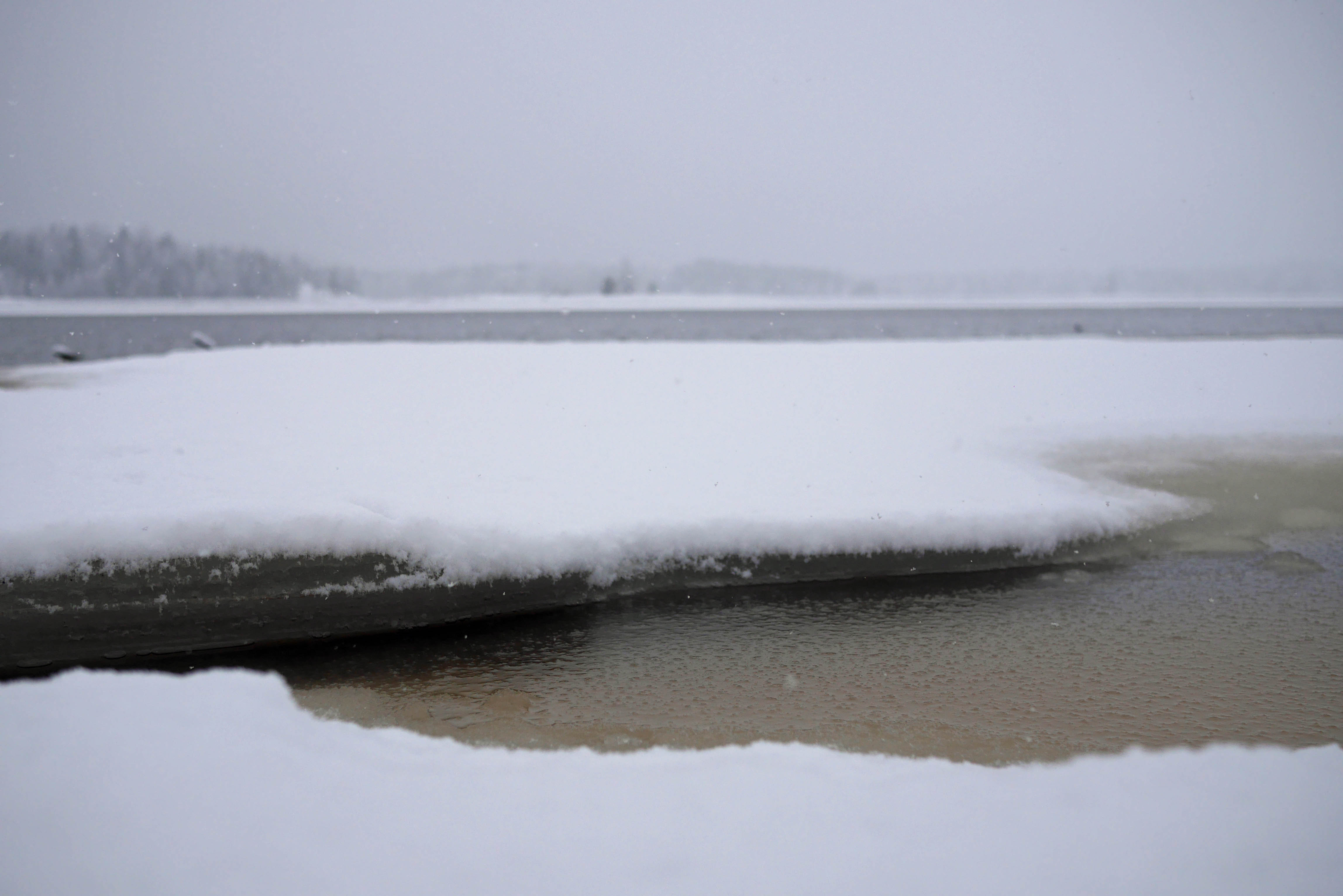 Jäät hupenevat Kyrkösjärjen tekojärvestä vauhdilla. Vaskiluodon Voiman Seinäjoen voimalaitos käyttää järvivettä jäähdytysjärjestelmässään. Voimala ottaa kylmää vettä järvestä ja palauttaa lämmintä takaisin. Tästä syystä varsinkin järven pohjoinen puoli on usein heikkojäinen. Nyt rannoilla on vielä jäätä, keskellä ei.